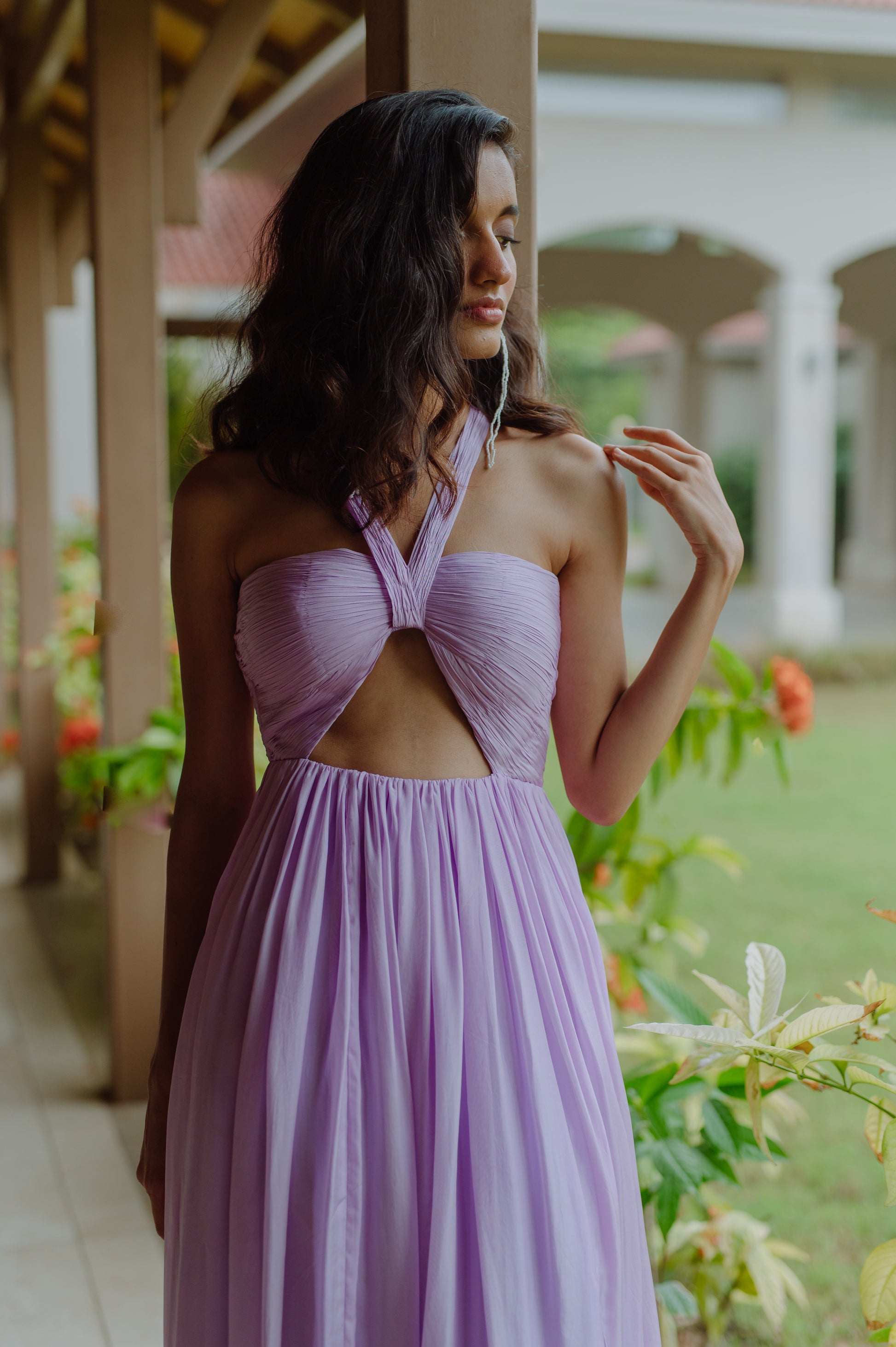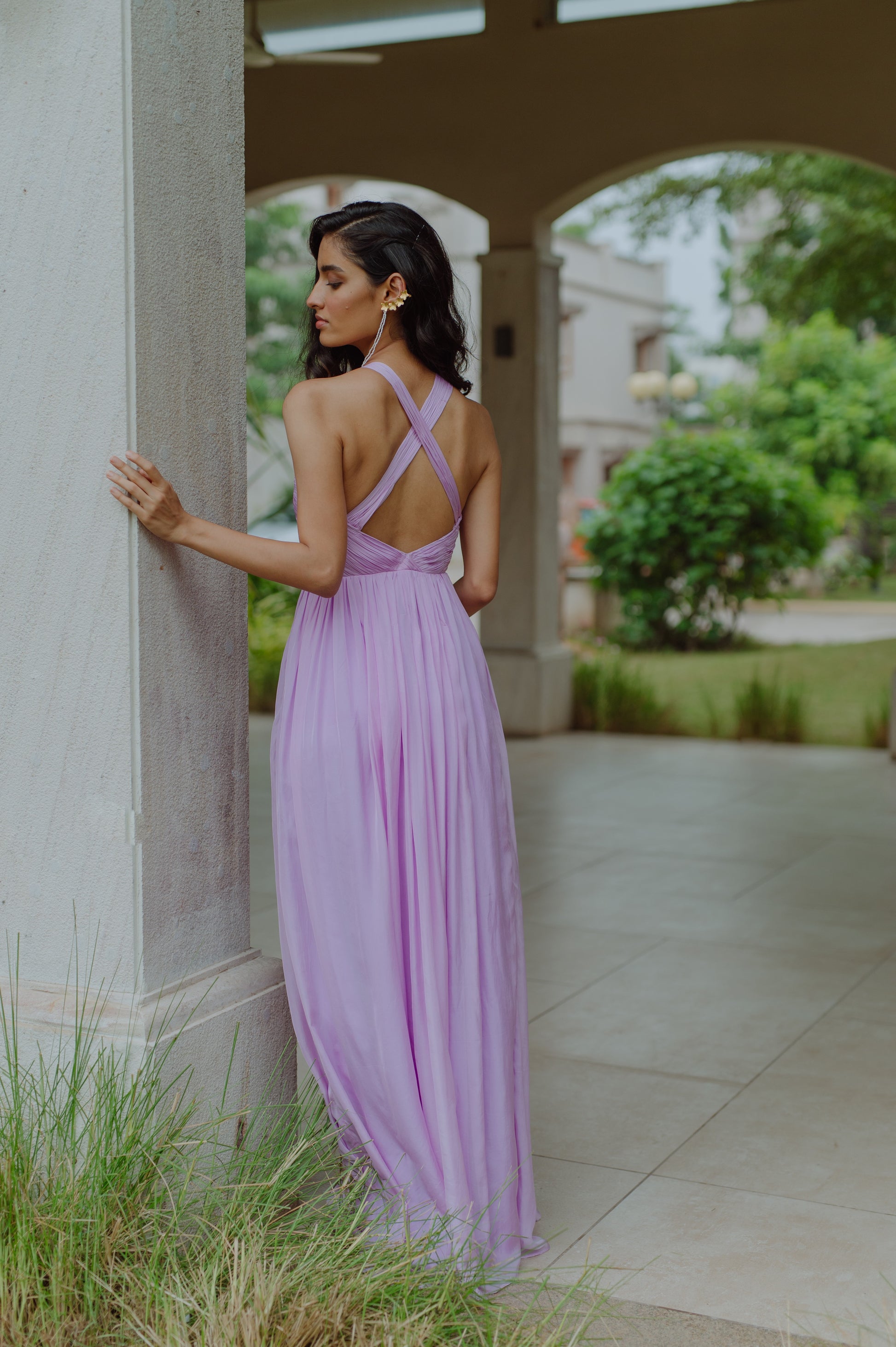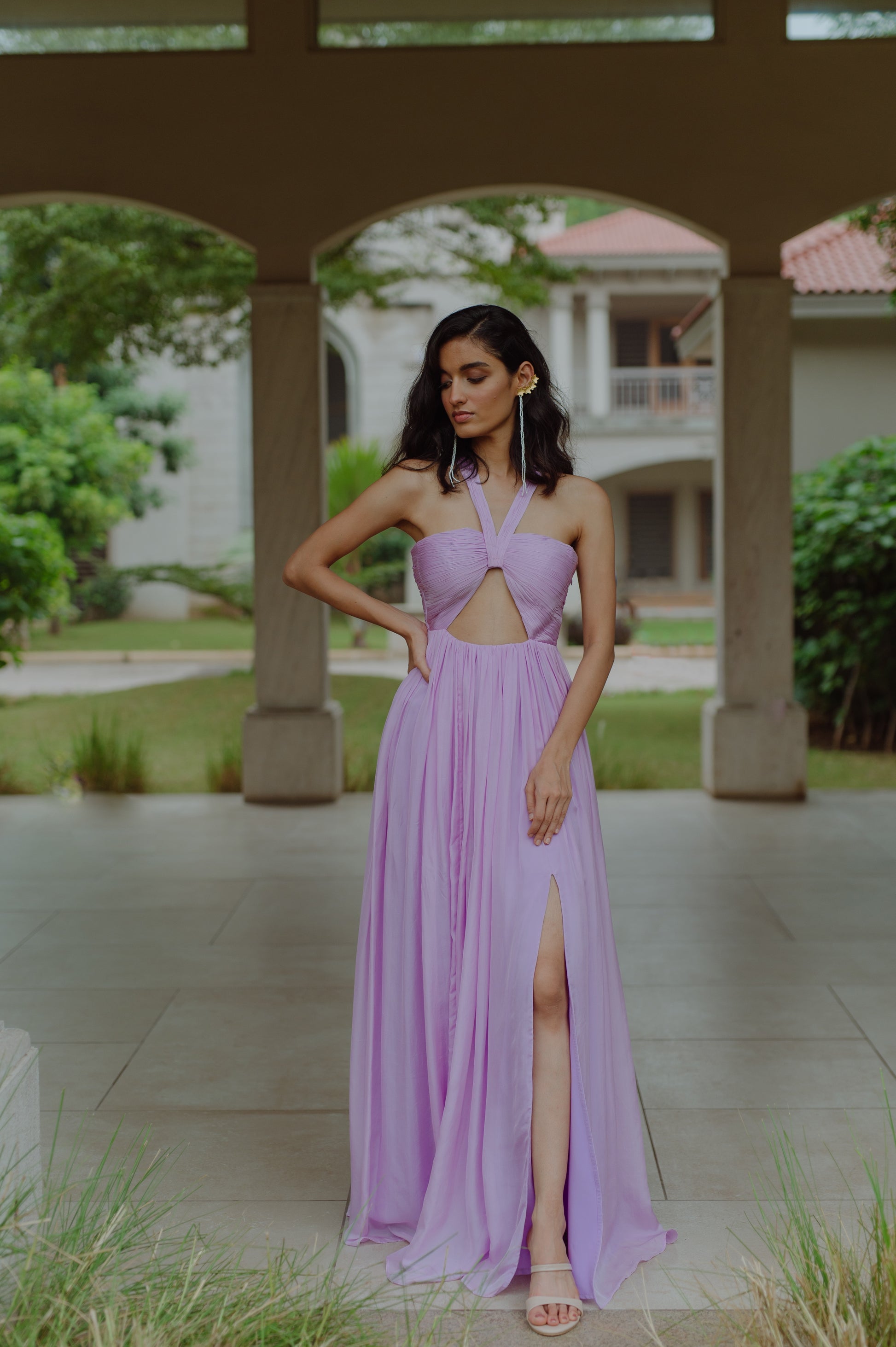 Indulge in elegance with our v-cut gown, featuring intricate rushing on the bodice. Perfect for bridesmaids, beach weddings, vacations, or pre-wedding photoshoots, this gown will elevate any occasion. Embrace luxury and sophistication with this exclusive piece.