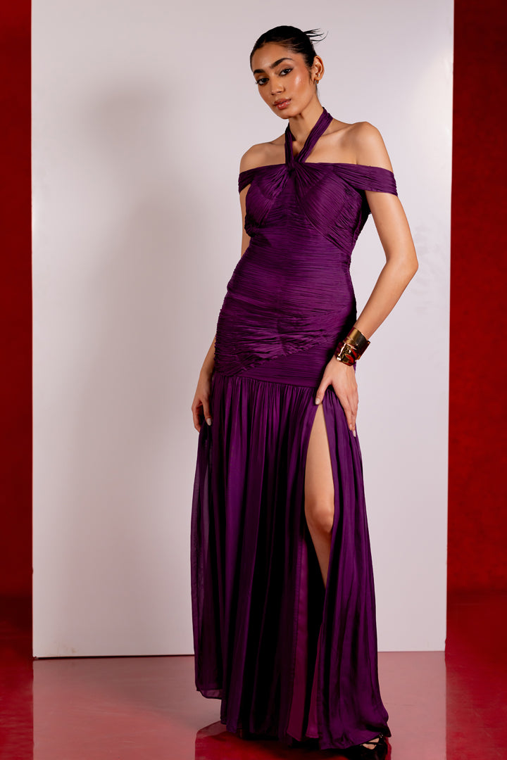 Indulge in luxury with the MONTEPULCIANO gown. Featuring a dropped waistline with hand-rushed details and an off-shoulder neckline to accentuate your collar bones. Perfect for destination weddings, bridesmaids, or any special occasion. Sophisticated and exclusive, this gown is a must-have for the discerning fashionista.