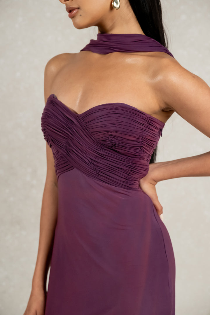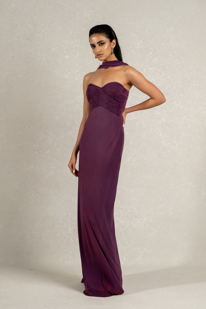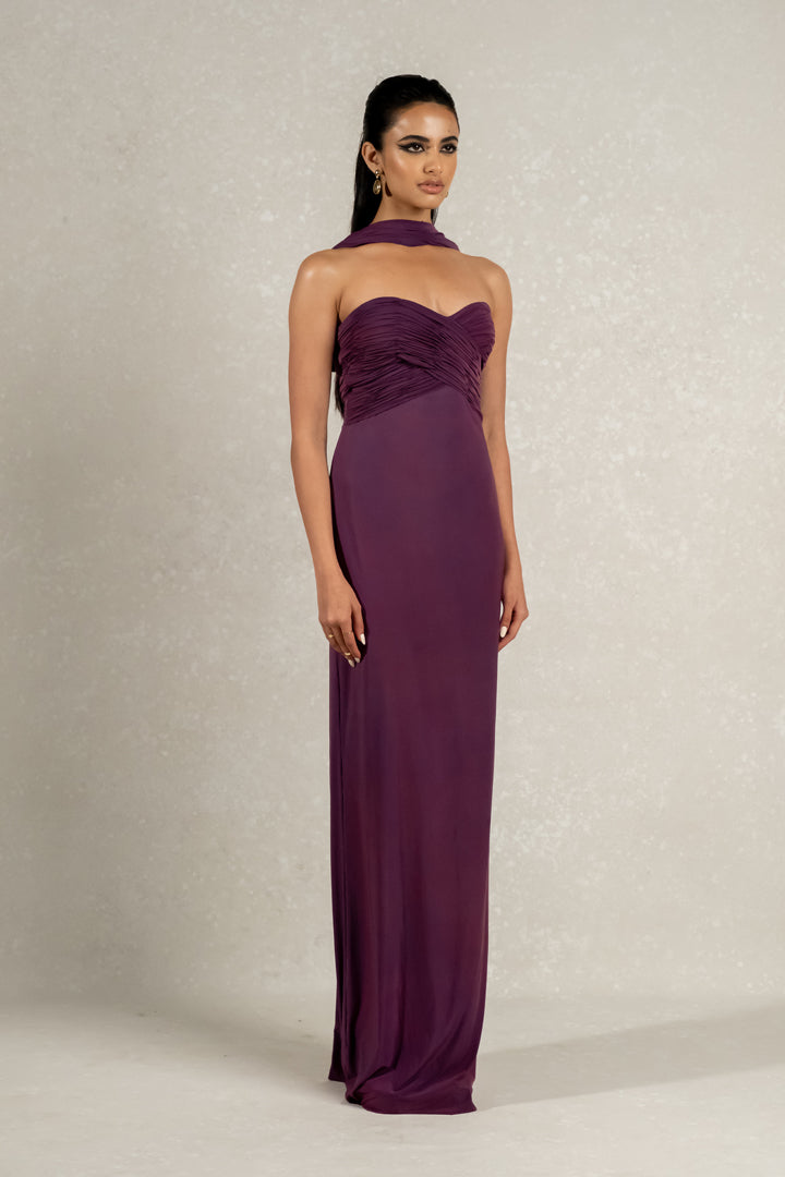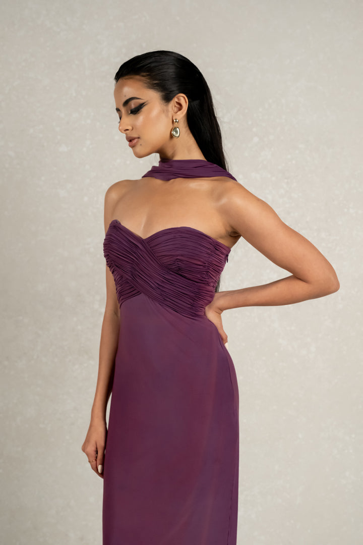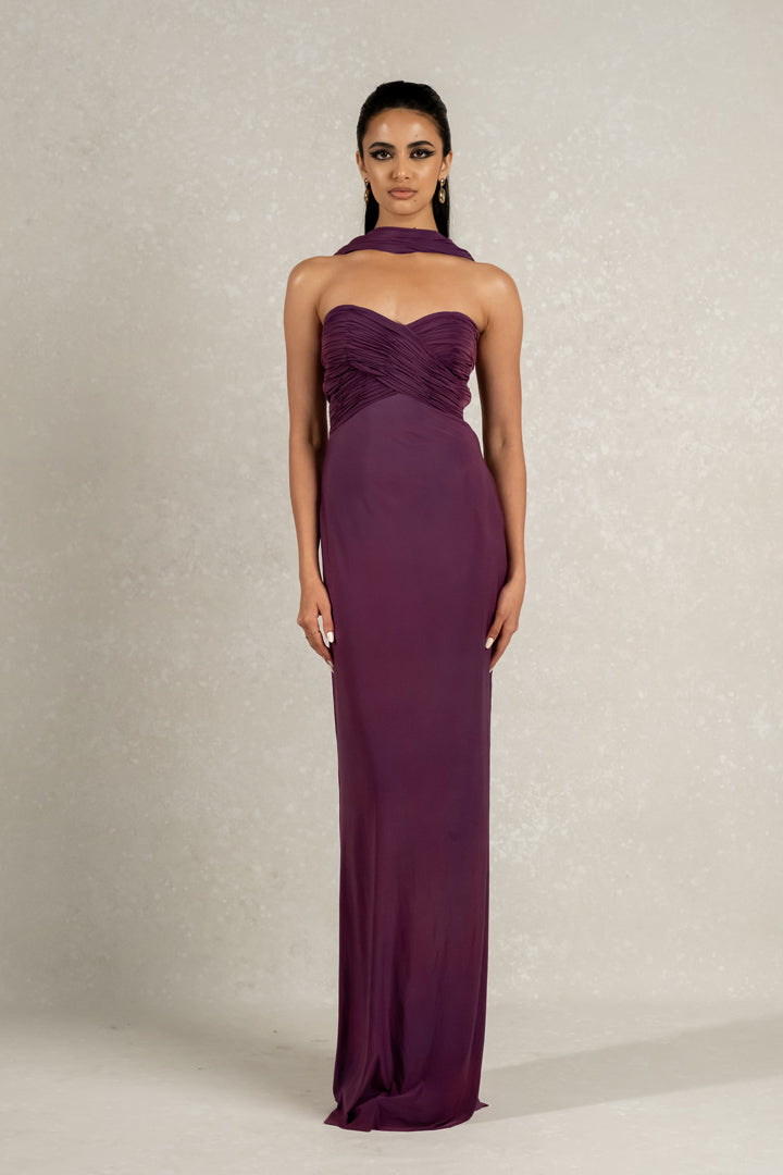 Indulge in luxury with our Malai lycra gown. Featuring a sweetheart neckline, off shoulder design, and hand pleated detailing on the bust, this gown exudes elegance and sophistication. Complete with a draped neckline, it's the perfect attire for special occasions.